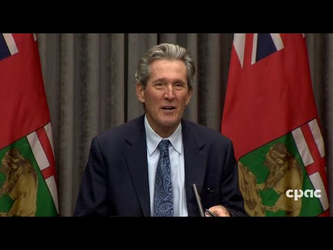 Premier of manitoba brian pallister speaks at a news conference after the 2021 budget was delivered at the manitoba legislative building in winnipeg on wednesday, april 7, 2021.